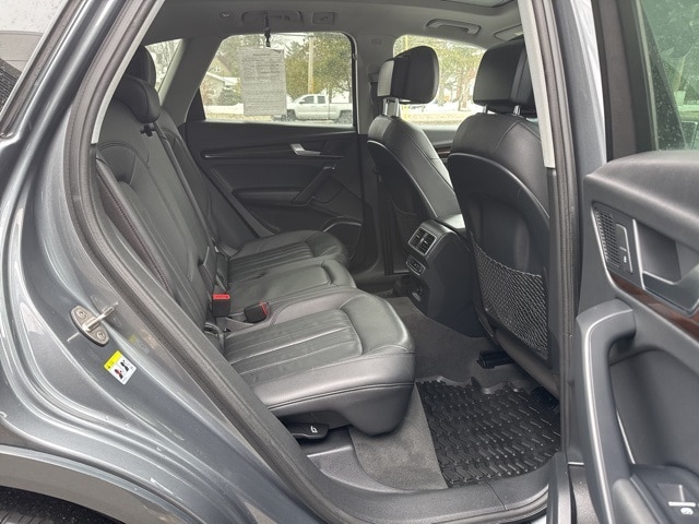 Q5 Prestige with Warm Weather package (Sport Seat both front seats identical with cool ventilation). Riding on air. There is no other way to put it. The sport seats difference other than cooling is “wings” that hold your butt and back in place, a 24 position electric adjustment on BOTH identical front seats with thigh support extenders, excellent for a couple with very bad backs. Power: watch out for fishtailing as you can feel G forces when accelerating, if you want. When researching a replacement for our sloppy 2017 Pilot I noticed most owners of other new vehicles in the south were complaining about AC unable to keep up with the Florida, Texas and desert heats. No problem here, the Q5 has more cool air than needed here at 5200’ in the sunny July southwest desert. Instrumentation is terrific with heads up display, maps and routing directly in front of the driver. (What is more ridiculous than the cars that put the map in the center stack and aim it straight to the rear of the car? Who is sitting on the shift to look forward at the map?) Moving on, the interior materials scream quality. Plenty of rear legroom for a knee replacement patient and headroom not a problem anywhere. Rear seats recline a couple inches. Owners manual very well written with detail. You can spend an evening laughing hysterically at the index though. Looking to program the garage door opener? Look in a subcategory under “O”, “Open and Close”! It goes on, and kept us looking up things just to laugh at where they are. Summarizing: most comfortable luxurious road rocket I’ve ever owned. - 5.0