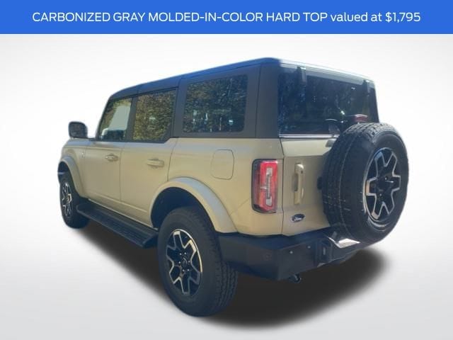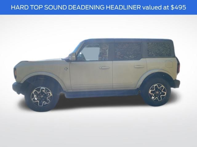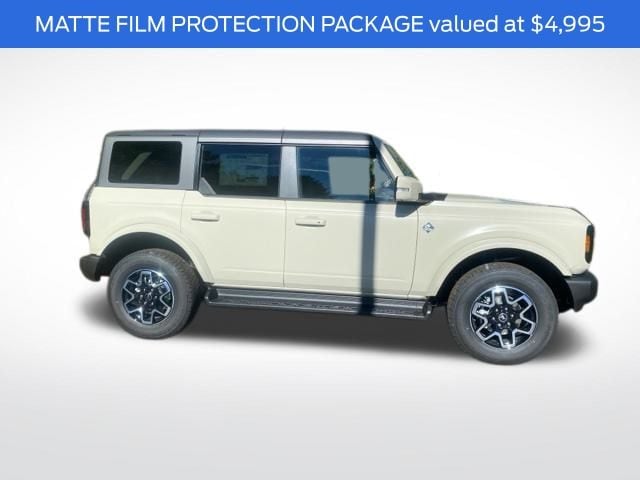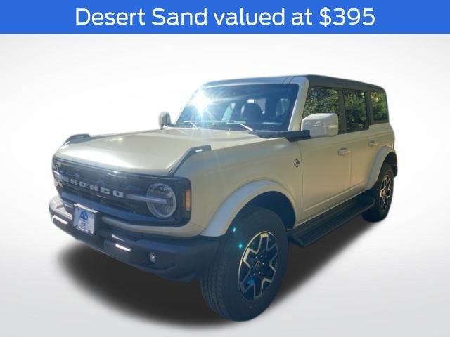 Finished in Desert Sand, the Bronco Outer Banks combines rugged utility with refined style. Its 4-door Sport Utility configuration provides easy access for passengers and gear, while functional off-road features, bold body lines, and durable exterior elements give it an unmistakable presence on and off the road.