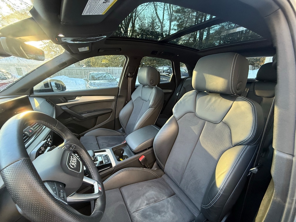 Q5 Prestige with Warm Weather package (Sport Seat both front seats identical with cool ventilation). Riding on air. There is no other way to put it. The sport seats difference other than cooling is “wings” that hold your butt and back in place, a 24 position electric adjustment on BOTH identical front seats with thigh support extenders, excellent for a couple with very bad backs. Power: watch out for fishtailing as you can feel G forces when accelerating, if you want. When researching a replacement for our sloppy 2017 Pilot I noticed most owners of other new vehicles in the south were complaining about AC unable to keep up with the Florida, Texas and desert heats. No problem here, the Q5 has more cool air than needed here at 5200’ in the sunny July southwest desert. Instrumentation is terrific with heads up display, maps and routing directly in front of the driver. (What is more ridiculous than the cars that put the map in the center stack and aim it straight to the rear of the car? Who is sitting on the shift to look forward at the map?) Moving on, the interior materials scream quality. Plenty of rear legroom for a knee replacement patient and headroom not a problem anywhere. Rear seats recline a couple inches. Owners manual very well written with detail. You can spend an evening laughing hysterically at the index though. Looking to program the garage door opener? Look in a subcategory under “O”, “Open and Close”! It goes on, and kept us looking up things just to laugh at where they are. Summarizing: most comfortable luxurious road rocket I’ve ever owned. - 5.0