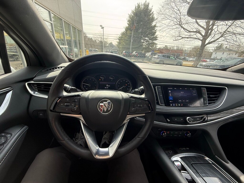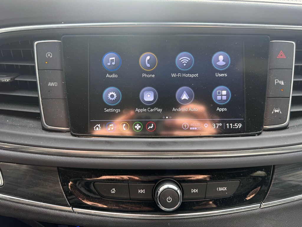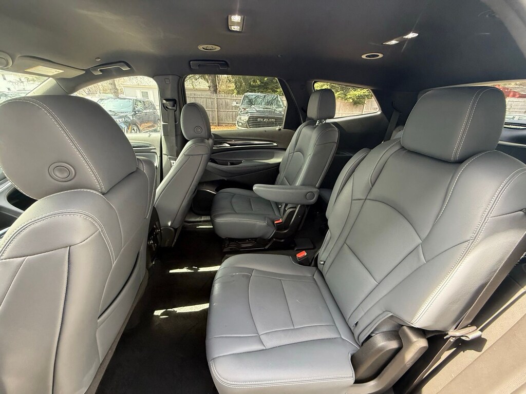 AWD, 18" Aluminum Wheels, 3.49 Axle Ratio, 3rd row seats: split-bench, 4-Wheel Disc Brakes, 6 Speakers, 6-Speaker Audio System Feature, 6-Way Power Front Passenger Seat Adjuster, 7-Passenger Seating, 8-Way Power Driver Seat Adjuster, ABS brakes, Air Conditioning, Alloy wheels, AM/FM radio: SiriusXM with 360L, Auto High-beam Headlights, Auto-dimming door mirrors, Auto-dimming Rear-View mirror, Automatic temperature control, Brake assist, Bumpers: body-color, Compass, Delay-off headlights, Driver door bin, Driver vanity mirror, Dual front impact airbags, Dual front side impact airbags, Electronic Stability Control, Emergency communication system: OnStar and Buick connected services capable, Four wheel independent suspension, Front & Rear Park Assist, Front anti-roll bar, Front Bucket Seats, Front Center Armrest, Front dual zone A/C, Front Mounting License Plate Bracket Package, Front reading lights, Fully automatic headlights, Garage door transmitter, Heated door mirrors, Heated Driver & Front Passenger Seats, Heated front seats, Heated Steering Wheel, Heated steering wheel, Illuminated entry, Leather steering wheel, Low tire pressure warning, Occupant sensing airbag, Outside temperature display, Overhead airbag, Overhead console, Panic alarm, Passenger door bin, Passenger vanity mirror, Power door mirrors, Power Driver Lumbar Control Seat Adjuster, Power driver seat, Power Liftgate, Power Passenger Lumbar Control Seat Adjuster, Power passenger seat, Power steering, Power windows, Preferred Equipment Group 1SL, Premium audio system: Buick Infotainment System, Radio data system, Radio: Buick Infotainment System AM/FM Stereo, Rear air conditioning, Rear anti-roll bar, Rear reading lights, Rear window defroster, Rear window wiper, Remote keyless entry, Roof rack: rails only, Security system, SiriusXM w/360L, Speed control, Speed-sensing steering, Spoiler, Steering wheel mounted audio controls, Tachometer, Telescoping steering wheel, Tilt steering wheel, Traction control, Trip computer, Turn signal indicator mirrors, Variably intermittent wipers, Voltmeter, Wireless Apple CarPlay/Wireless Android Auto.
