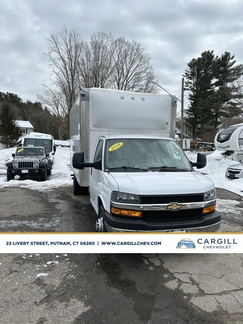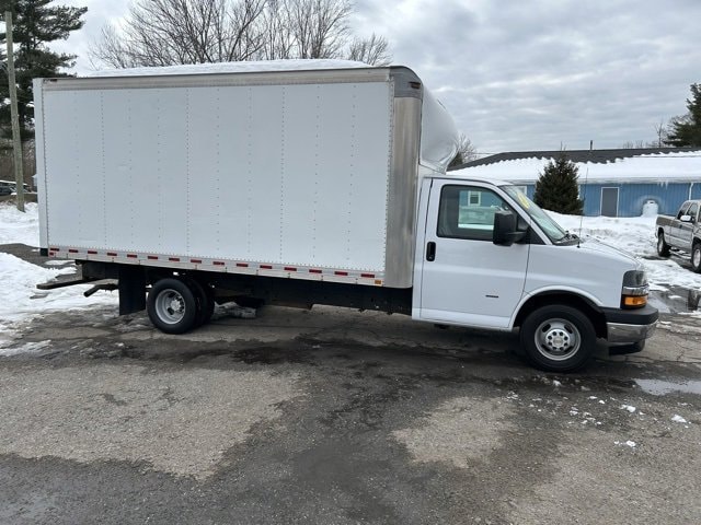We are the dealer at the end of your driveway, we come to you!For more information on this or any other Cargill Chevrolet vehicle, go to www.cargillchev.com.Odometer is 28855 miles below market average! 2D Chassis Summit White RWD 6.0L V8please write a short, detailed description of this 2018 Chevy Express 3500 Work Van Cutaway with a 14ft boxGemini saidThis 2018 Chevrolet Express 3500 Work Van Cutaway is a versatile and heavy-duty solution for businesses requiring maximum cargo volume. With its 159-inch wheelbase and a 14-foot upfit box, this vehicle is designed to handle large-scale deliveries, equipment transport, or moving services with ease.This specific unit is in excellent mechanical standing, featuring 84,411 miles, which is 28,855 miles below the market average.Performance & MechanicalEngine: Powered by the robust 6.0L V8, offering the necessary torque for heavy hauling.Transmission: 6-speed Automatic Heavy-Duty Electronic with Overdrive.Chassis: Dual Rear Wheel (DRW) configuration for increased stability and higher payload capacity.Fresh Maintenance: This van comes ready to work with NEW TIRES and NEW BRAKES.Cargo & UtilityBox Dimensions: A 14-foot length provides ample square footage for bulk items.Towing: Includes an Enhanced Towing Performance Package and a Heavy-Duty Locking Rear Differential for superior traction under load.Electrical: Equipped with a 220 Amps Alternator and a 770 CCA Heavy-Duty Battery to support additional upfit electronics or tools.Interior & TechnologyDriver Convenience: Features the Driver Convenience Package with Tilt Steering and Cruise Control for long-haul comfort.Connectivity: Stay connected with Bluetooth for Phone, 4G LTE Wi-Fi Hotspot capability, and Chevrolet Connected Access.Safety: Includes a Backup Camera (displayed in the rearview mirror) and a Chrome Appearance Package for a professional look on the road.ReliabilityOwnership: Boasts a 1-Owner Clean AutoCheck history report.Condition: Noted in Great Condition and ready for immediate deployment into your fleet.