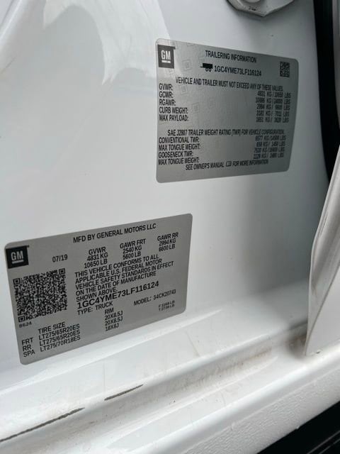 Built to handle the toughest tasks with confidence and style, the 2020 Chevrolet Silverado 2500HD Custom is a heavy-duty truck that delivers power, capability, and bold presence. Whether you're towing heavy equipment or heading out on a weekend adventure, this Silverado is engineered to get the job done without compromise. Under the hood, it's powered by a 6.6L V8 gas engine paired with a 6-speed automatic transmission, delivering 401 horsepower and 464 lb-ft of torque. With a massive towing capacity of over 17,000 lbs, this truck is a true workhorse ready for any challenge. The trailering package, integrated trailer brake controller, and Tow/Haul mode make it easier and safer to haul heavy loads with confidence. The Custom trim offers aggressive styling with 20-inch machined aluminum wheels, body color bumpers and grille, and black recovery hooks for a rugged, commanding look. The spacious Crew Cab provides plenty of room for passengers and gear, with durable cloth seating and practical interior features designed for daily use.