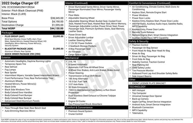 The 2022 Dodge Charger GT delivers unmistakable muscle-car presence paired with modern technology and all-wheel-drive confidence. Finished in Pitch Black Clearcoat and powered by a proven V6 engine, this Charger blends aggressive design, year-round traction, and everyday comfort into a sedan that stands out on New England roads.