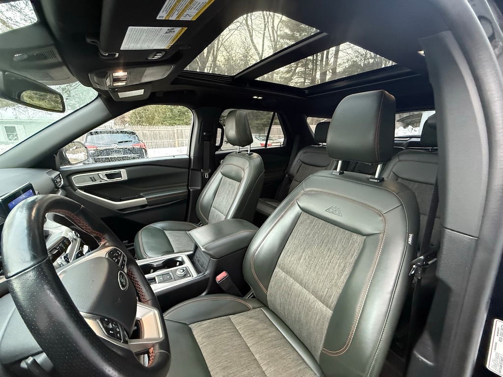 4WD, 110V/150W AC Power Outlet, 1st Row Heated Seats, 2nd Row Heated Seat Controls Credit, 3.58 Torsen Limited Slip Rear Axle, 3rd Row PowerFold Seat, 3rd row seats: bench, 4-Wheel Disc Brakes, 4G LTE Wi-Fi Hotspot Removal Credit, 6 Speakers, ABS brakes, ActiveX Seat Material Captain's Charis, Air Conditioning, Alloy wheels, AM/FM radio: SiriusXM, AM/FM Stereo, Auto High-beam Headlights, Auto Start-Stop Removal, Auto-Dimming Interior Rear-View Mirror, Automatic temperature control, Brake assist, Bumpers: body-color, Compass, Delay-off headlights, Driver door bin, Driver vanity mirror, Dual front impact airbags, Dual front side impact airbags, Electronic Stability Control, Emergency communication system: SYNC 3 911 Assist, Equipment Group 800A, Exterior Parking Camera Rear, FordPass Connect, Four wheel independent suspension, Front anti-roll bar, Front Bucket Seats, Front Center Armrest, Front dual zone A/C, Front fog lights, Front License Plate Bracket, Front reading lights, Fully automatic headlights, Heated door mirrors, Heated front seats, Heated rear seats, Heated steering wheel, Illuminated entry, Knee airbag, Leather steering wheel, Low tire pressure warning, Navigation System, Occupant sensing airbag, Outside temperature display, Overhead airbag, Overhead console, Panic alarm, Passenger door bin, Passenger vanity mirror, Power door mirrors, Power driver seat, Power Liftgate, Power passenger seat, Power steering, Power windows, Radio: B&O Sound System by Bang & Olufsen, Rear air conditioning, Rear anti-roll bar, Rear Auxiliary Controls Credit, Rear reading lights, Rear window defroster, Rear window wiper, Remote keyless entry, Roof rack: rails only, Security system, SelectShift Capability w/Paddle Shifters, Sideview Mirrors w/Gloss Black Caps, Speed control, Speed-sensing steering, Speed-Sensitive Wipers, Split folding rear seat, Spoiler, Sport steering wheel, Steering wheel mounted audio controls, SYNC 3 Communications & Entertainment System, SYNC 3/Apple CarPlay/Android Auto, Tachometer, Telescoping steering wheel, Tilt steering wheel, Timberline Technology Package, Traction control, Trip computer, Twin Panel Moonroof, Universal Garage Door Opener (UGDO), Variably intermittent wipers, Voice-Activated Touchscreen Navigation System, Wheels: 18" High Gloss Black-Painted Aluminum, Wireless Charging Pad.
