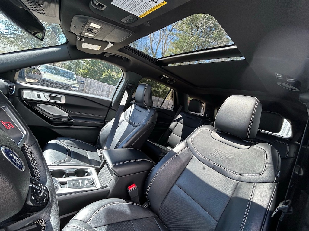 4WD, 10.1" LCD Capacitive Portrait Touchscreen, 110V/150W AC Power Outlet, 2 Additional Speakers, 20" Machined Aluminum w/Painted Pockets Wheels, 3.58 Non-Limited-Slip Rear Axle Ratio, 360-Degree Camera w/Split View, 3rd row seats: bench, 4-Wheel Disc Brakes, 4G LTE Wi-Fi Hotspot Credit, 6 Speakers, ABS brakes, Air Conditioning, Alloy wheels, AM/FM radio: SiriusXM, AM/FM Stereo, Auto High-beam Headlights, Auto-Dimming Rearview Mirror (Interior), Automatic temperature control, Brake assist, Bumpers: body-color, Compass, Delay-off headlights, Driver door bin, Driver vanity mirror, Dual front impact airbags, Dual front side impact airbags, Electronic Stability Control, Emergency communication system: SYNC 3 911 Assist, Equipment Group 401A, Evasive Steering Assist, Exterior Parking Camera Rear, Ford Co-Pilot360 Assist+, FordPass Connect, Four wheel independent suspension, Front & Second Row Floor Liners (16B), Front anti-roll bar, Front Bucket Seats, Front Center Armrest, Front dual zone A/C, Front fog lights, Front Parking Sensors, Front Rain-Sensing Wipers, Front reading lights, Fully automatic headlights, Heated door mirrors, Heated front seats, Heated steering wheel, Illuminated entry, Intelligent Adaptive Cruise Control, Knee airbag, Leather Htd/Ventilated Sport Captain's Chairs, Leather steering wheel, Low tire pressure warning, Memory Driver's Seat, Memory seat, Occupant sensing airbag, Outside temperature display, Overhead airbag, Overhead console, Panic alarm, Passenger door bin, Passenger vanity mirror, Performance Front & Rear Brakes, Power door mirrors, Power driver seat, Power Liftgate, Power passenger seat, Power steering, Power Tilt/Telescoping Steering Column, Power windows, Radio: B&O Sound System by Bang & Olufsen, Rear air conditioning, Rear anti-roll bar, Rear reading lights, Rear window defroster, Rear window wiper, Remote keyless entry, Reverse Brake Assist, Second Row Heated Seats, Security system, SelectShift Capability w/Paddle Shifters, Sideview Mirrors w/Gloss Black Caps, Speed control, Speed Sign Recognition, Speed-sensing steering, Speed-Sensitive Wipers, Split folding rear seat, Spoiler, Sport steering wheel, ST High Package, ST Street Pack, Steering wheel mounted audio controls, SYNC 3 Communications & Entertainment System, SYNC 3/Apple CarPlay/Android Auto, Tachometer, Technology Package, Telescoping steering wheel, Third Row PowerFold (Folds Flat), Tilt steering wheel, Traction control, Trip computer, Twin Panel Moonroof, Universal Garage Door Opener (UGDO), Variably intermittent wipers, Ventilated front seats, Voice-Activated Touchscreen Navigation System, Wheels: 21" Aluminum, Wireless Charging Pad.