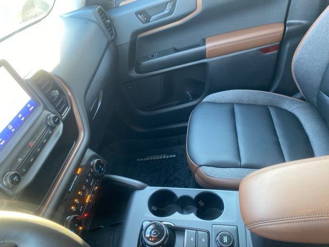 The Desert Sand exterior highlights the Bronco Sports rugged, adventurous styling, including bold lines, distinctive front fascia, and a roofline designed for utility and aesthetics. Its 4-door design offers easy access to passengers and cargo.