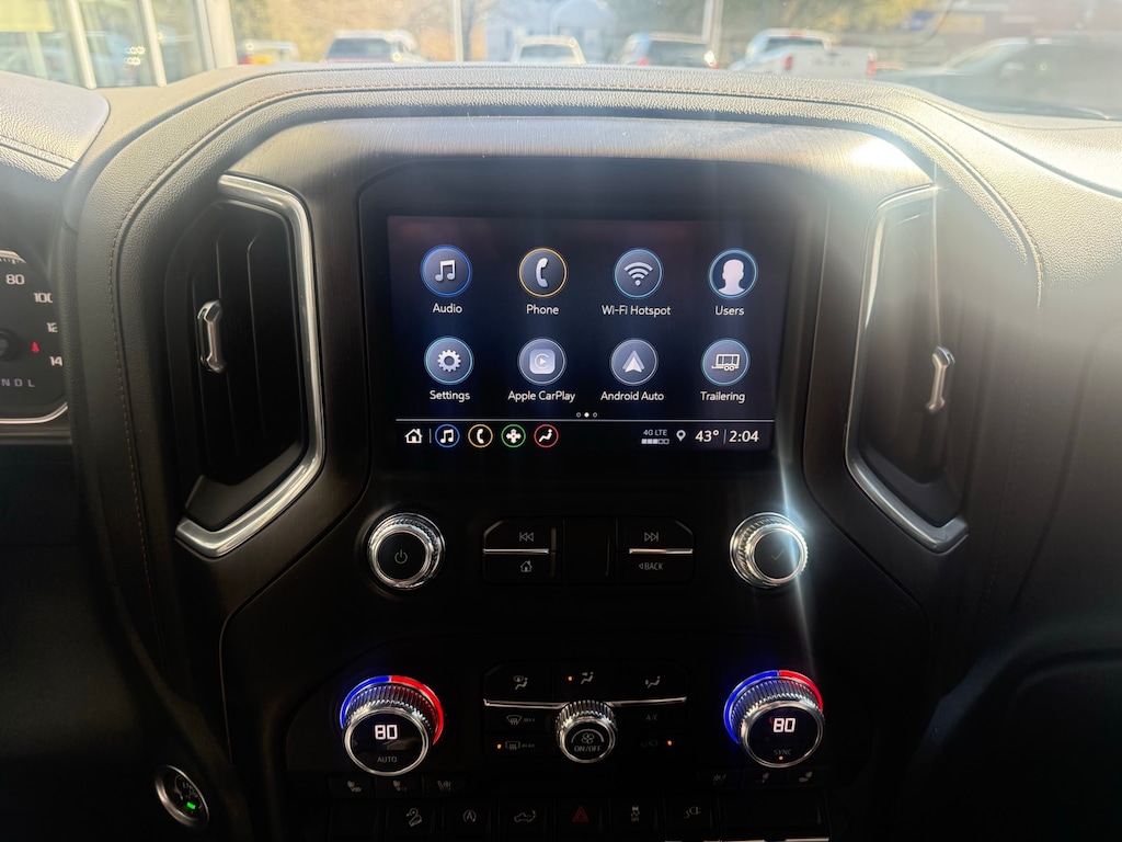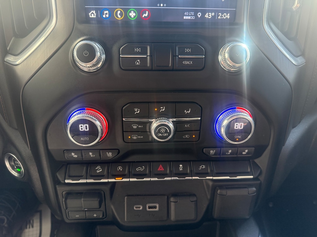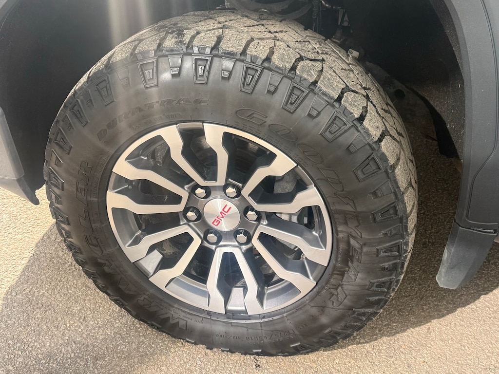 10-Speed Automatic, 4WD, Jet Black With Kalahari Accents Leather, 10-Way Power Driver Seat Adjuster w/Lumbar, 10-Way Power Passenger Seat Adjuster w/Lumbar, 12-Volt Rear Auxiliary Power Outlet, 120-Volt Bed Mounted Power Outlet, 120-Volt Instrument Panel Power Outlet, 170 Amp Alternator, 18" x 8.5" Machined Aluminum Wheels, 2 USB Ports, 2 USB Ports (1st Row), 220 Amp Alternator, 3.23 Rear Axle Ratio, 4-Wheel Disc Brakes, 4.2" Diagonal Color Display Driver Info Center, 4G LTE Wi-Fi Hotspot Capable, 6 Speakers, 6-Speaker Audio System Feature, ABS brakes, Air Conditioning, Alloy wheels, AM/FM radio: SiriusXM with 360L, Apple CarPlay/Android Auto, Auto-dimming door mirrors, Auto-dimming Rear-View mirror, Auto-Locking Rear Differential, Automatic temperature control, Body-Color Surround Grille, Brake assist, Bumpers: body-color, Color-Keyed Carpeting Floor Covering, Compass, Deep-Tinted Glass, Delay-off headlights, Driver door bin, Driver Memory, Driver vanity mirror, Dual front impact airbags, Dual front side impact airbags, Electric Rear-Window Defogger, Electrical Lock Control Steering Column, Electronic Stability Control, Engine Block Heater, Floor-Mounted Center Console, Front anti-roll bar, Front Bucket Seats, Front Center Armrest, Front dual zone A/C, Front fog lights, Front License Plate Kit, Front Prem Floor Liners w/Removable Carpet Insert, Front reading lights, Front wheel independent suspension, Fully automatic headlights, GMC Connected Access Capable, HD Rear Vision Camera, Heated door mirrors, Heated Driver & Front Outboard Passenger Seating, Heated front seats, Heated steering wheel, Heavy-Duty Air Filter, Hill Descent Control, Hitch Guidance, Hitch Guidance w/Hitch View, Illuminated entry, In-Vehicle Trailering App, Integrated Trailer Brake Controller, Keyless Open & Start, LED Cargo Area Lighting, Low tire pressure warning, Manual Tilt-Wheel & Telescoping Steering Column, Memory seat, Not Equipped w/HD Radio, Not Equipped w/Heated 2nd Row Outboard Seats, Occupant sensing airbag, Off-Road Suspension, OnStar & GMC Connected Services Capable, Outside temperature display, Overhead airbag, Overhead console, Panic alarm, Passenger door bin, Passenger vanity mirror, Perforated Leather-Appointed Front Seat Trim, Power Door Locks, Power door mirrors, Power driver seat, Power Front Passenger Windows w/Express Up/Down, Power Front Windows w/Driver Express Up/Down, Power passenger seat, Power Rear Windows w/Express Down, Power steering, Power windows, Preferred Equipment Group 4SB, Premium audio system: GMC Infotainment System, ProGrade Trailering System, Radio data system, Radio: Premium GMC Infotainment Sys w/Multi-Touch, Rear Dual USB Charging-Only Ports, Rear Prem Floor Liners w/Removable Carpet Insert, Rear reading lights, Rear seat center armrest, Rear step bumper, Rear Wheelhouse Liners, Rear window defroster, Red Recovery Hooks, Remote keyless entry, Remote Vehicle Starter System, Security system, SiriusXM w/360L, Speed control, Speed-sensing steering, Split folding rear seat, Spray-On Pickup Bed Liner w/AT4 Logo, Steering Wheel Audio Controls, Steering wheel mounted audio controls, Tachometer, Telescoping steering wheel, Theft Deterrent System (Unauthorized Entry), Tilt steering wheel, Traction control, Trailering Package, Trip computer, Variably intermittent wipers, Ventilated Driver & Front Passenger Seats, Ventilated front seats, Voltmeter.