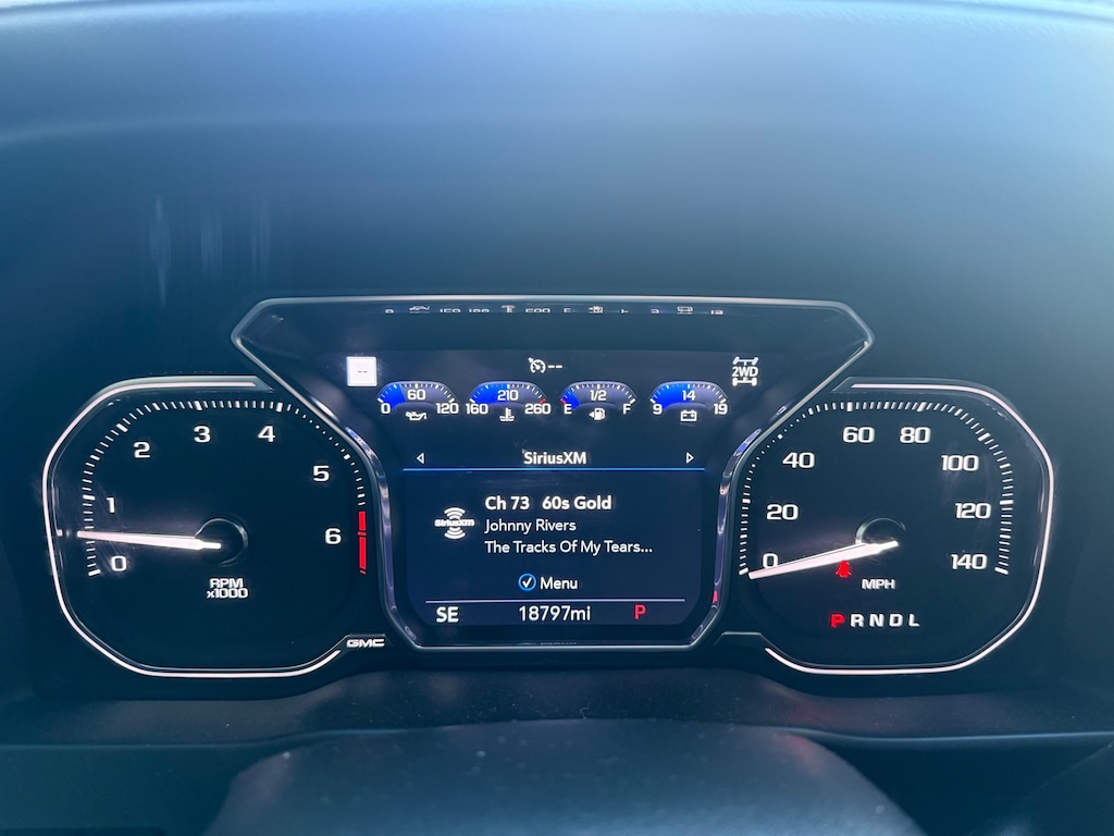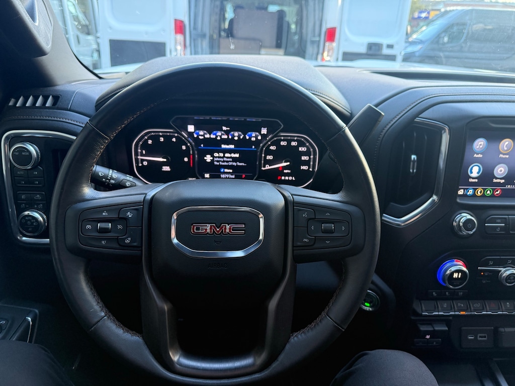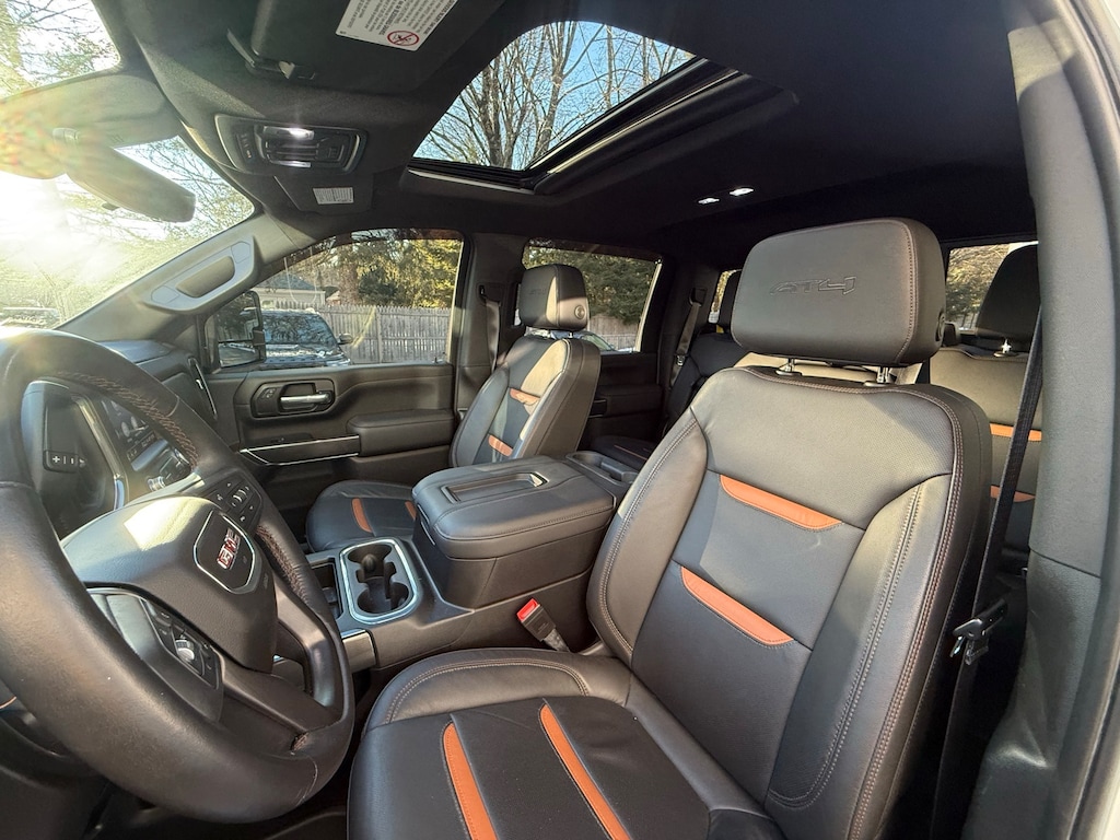 6-Speed Automatic, 4WD, Jet Black With Kalahari Accents Leather, 10-Way Power Driver Seat Adjuster w/Lumbar, 10-Way Power Passenger Seat Adjuster w/Lumbar, 12-Volt Rear Auxiliary Power Outlet, 120-Volt Bed Mounted Power Outlet, 120-Volt Instrument Panel Power Outlet, 18" Machined Aluminum Wheels, 2 USB Ports, 2 USB Ports (1st Row), 2-Speed Active Transfer Case, 20" Machined Aluminum Wheels, 220 Amps Alternator, 2nd Row Dual USB Charge-Only Ports, 3.73 Rear Axle Ratio, 4-Wheel Disc Brakes, 4.2" Diagonal Color Display Driver Info Center, 4G LTE Wi-Fi Hotspot Capable, 6 Speakers, 6-Speaker Audio System Feature, 8" Multicolor Driver Information Center, ABS brakes, Air Conditioning, Alloy wheels, AM/FM radio: SiriusXM with 360L, Apple CarPlay/Android Auto, AT4 High Clearance Step (LPO), AT4 Preferred Package, AT4 Premium Plus Package, Auto-dimming door mirrors, Auto-dimming Rear-View mirror, Automatic Emergency Braking, Automatic temperature control, Bed View Camera w/2 Trailer Camera Provisions, Bose Premium 7 Speaker Sound System, Brake assist, Bumpers: body-color, Compass, Compass Located In Instrument Cluster, Deep-Tinted Glass, Delay-off headlights, Driver Alert Package I, Driver Alert Package II, Driver door bin, Driver Memory, Driver vanity mirror, Dual front impact airbags, Dual front side impact airbags, Electric Rear-Window Defogger, Electrical Lock Control Steering Column, Electronic Stability Control, Floor-Mounted Center Console, Following Distance Indicator, Forward Collision Alert, Front anti-roll bar, Front Bucket Seats, Front Center Armrest, Front dual zone A/C, Front fog lights, Front License Plate Kit, Front Prem Floor Liners w/Removable Carpet Insert, Front reading lights, Front wheel independent suspension, Fully automatic headlights, GMC Connected Access Capable, GMC MultiPro Tailgate Step Lights (LPO), Gooseneck/5th Wheel Package, HD Radio, HD Rear Vision Camera, HD Surround Vision, Heated & Ventilated Front Bucket Seats, Heated 2nd Row Outboard Seats, Heated door mirrors, Heated Driver & Front Outboard Passenger Seats, Heated front seats, Heated rear seats, Heated steering wheel, Heavy-Duty 80 Amp Battery, Hill Descent Control, Hitch Guidance w/Hitch View, Illuminated entry, In-Vehicle Trailering System App, Inside Rearview Auto-Dimming Rear Camera Mirror, Integrated Trailer Brake Controller, IntelliBeam Automatic High Beam On/Off, Keyless Open & Start, Lane Change Alert w/Side Blind Zone Alert, Lane Departure Warning System, LED Cargo Area Lighting, LED Smoked Amber Roof Marker Lamps, Low tire pressure warning, Manual Tilt-Wheel/Telescoping Steering Column, Memory seat, Multicolor 15" Diagonal Head-Up Display, Occupant sensing airbag, Off-Road Suspension, OnStar & GMC Connected Services Capable, Outside temperature display, Overhead airbag, Overhead console, Painted Black Surround Grille, Panic alarm, Passenger door bin, Passenger vanity mirror, Perforated Leather-Appointed Front Seat Trim, Perimeter Lighting, Pickup Box, Power Door Locks, Power door mirrors, Power driver seat, Power Front Passenger Windows w/Express Up/Down, Power passenger seat, Power Rear Windows w/Express Down, Power Sliding Rear Window w/Defogger, Power steering, Power Sunroof, Power windows, Power Windows w/Driver Express Up/Down, Preferred Equipment Group 4SB, Premium audio system: Premium GMC Infotainment System, Radio: AM/FM w/Premium GMC Infotainment System, Radio: Premium GMC Infotainment Sys w/Navigation, Rear Cross Traffic Alert, Rear Prem Floor Liners w/Removable Carpet Insert, Rear reading lights, Rear seat center armrest, Rear step bumper, Rear Wheelhouse Liners, Rear window defroster, Red Recovery Hooks, Remote keyless entry, Remote Vehicle Starter System, Safety Alert Seat, Security system, SiriusXM w/360L, Snow Plow Prep/Camper Package, Speed control, Speed-sensing steering, Split folding rear seat, Spray-On Pickup Box Bed Liner w/AT4 Logo, Steering Wheel Audio Controls, Steering wheel mounted audio con