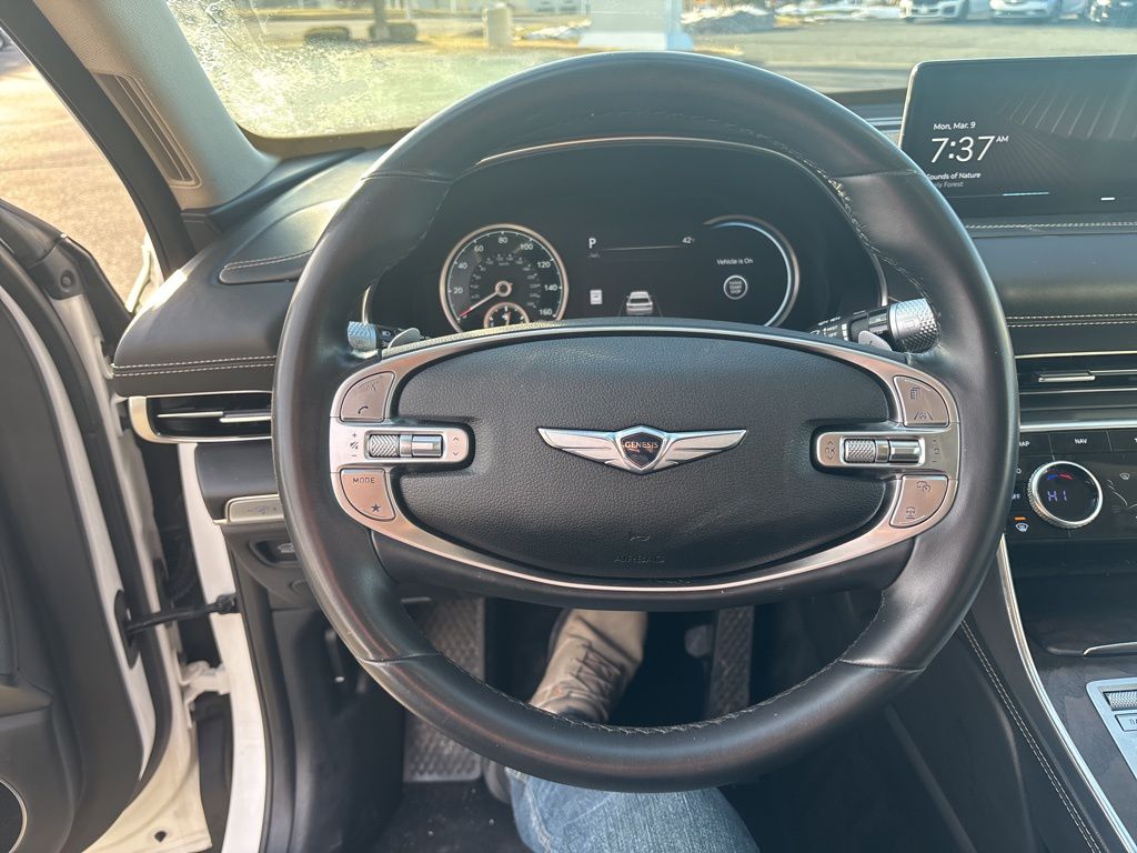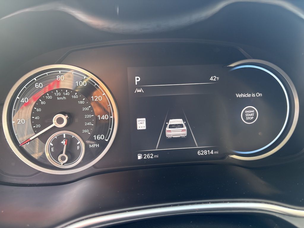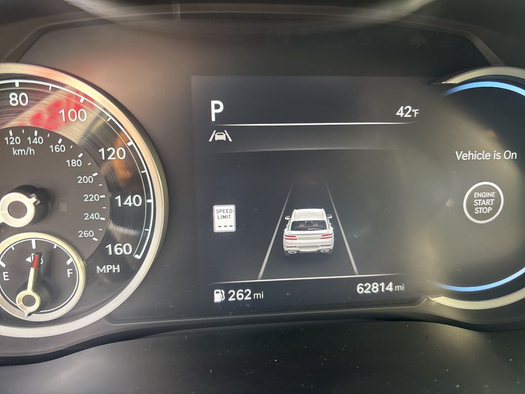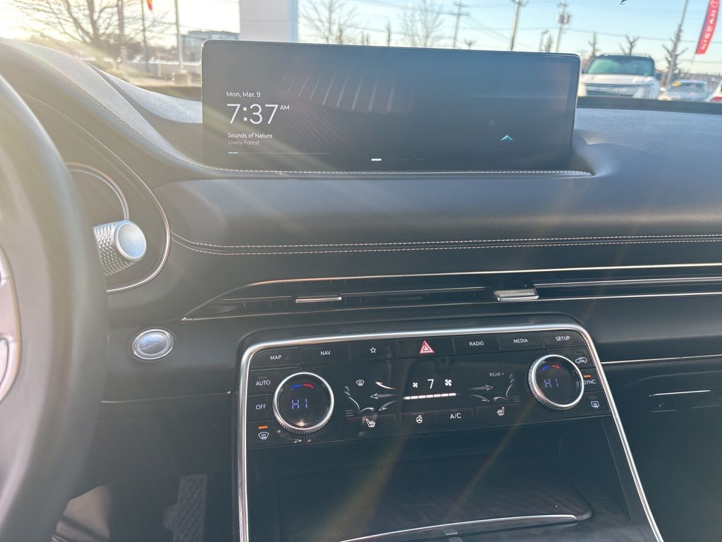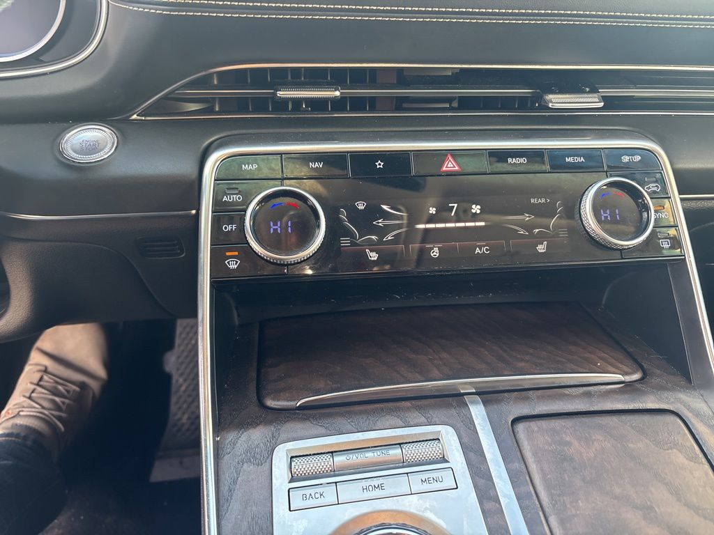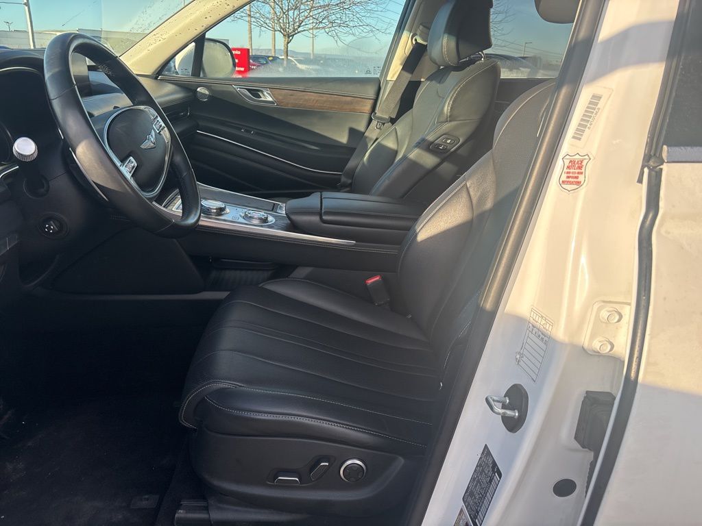 Clean CARFAX. CARFAX One-Owner. 12 Speakers, 4-Wheel Disc Brakes, 4.363 Axle Ratio, ABS brakes, Air Conditioning, Alloy wheels, AM/FM radio: SiriusXM, Android Auto & Apple CarPlay, Anti-whiplash front head restraints, Auto High-beam Headlights, Auto tilt-away steering wheel, Auto-dimming door mirrors, Auto-dimming Rear-View mirror, Auto-leveling suspension, Automatic temperature control, Brake assist, Bumpers: body-color, Compass, Delay-off headlights, Driver door bin, Driver vanity mirror, Dual front impact airbags, Dual front side impact airbags, Electronic Stability Control, Emergency communication system: Genesis Connected Services, Exterior Parking Camera Rear, Four wheel independent suspension, Front anti-roll bar, Front Bucket Seats, Front Center Armrest, Front dual zone A/C, Front reading lights, Fully automatic headlights, Garage door transmitter: HomeLink, Genuine wood console insert, Genuine wood dashboard insert, Genuine wood door panel insert, Heated door mirrors, Heated Front Bucket Seats, Heated front seats, Heated steering wheel, Illuminated entry, Knee airbag, Leather steering wheel, Leatherette Seating Surfaces, Low tire pressure warning, Memory seat, Navigation System, Occupant sensing airbag, Option Group 01, Outside temperature display, Overhead airbag, Overhead console, Panic alarm, Passenger door bin, Passenger vanity mirror, Power door mirrors, Power Drivers Seat, Power Liftgate, Power passenger seat, Power steering, Power windows, Radio data system, Radio:14.5" Navigation System w/AM/FM/HD Radio, Rain sensing wipers, Rear air conditioning, Rear anti-roll bar, Rear reading lights, Rear seat center armrest, Rear side impact airbag, Rear window defroster, Rear window wiper, Remote keyless entry, Security system, Speed control, Speed-sensing steering, Speed-Sensitive Wipers, Split folding rear seat, Spoiler, Steering wheel memory, Steering wheel mounted audio controls, Tachometer, Telescoping steering wheel, Tilt steering wheel, Traction control, Trip computer, Turn signal indicator mirrors, Variably intermittent wipers, Wheels: 19" x 8.5J Medium Metallic Gray Alloy.