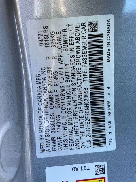 2022 Honda Civic LX 4D Sedan Lunar Silver Metallic 2022 Honda Civic LX FWD CVT 2.0L I4 DOHC 16V i-VTEC Black Cloth.