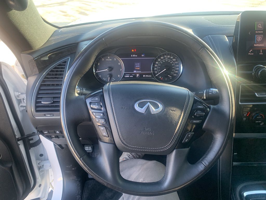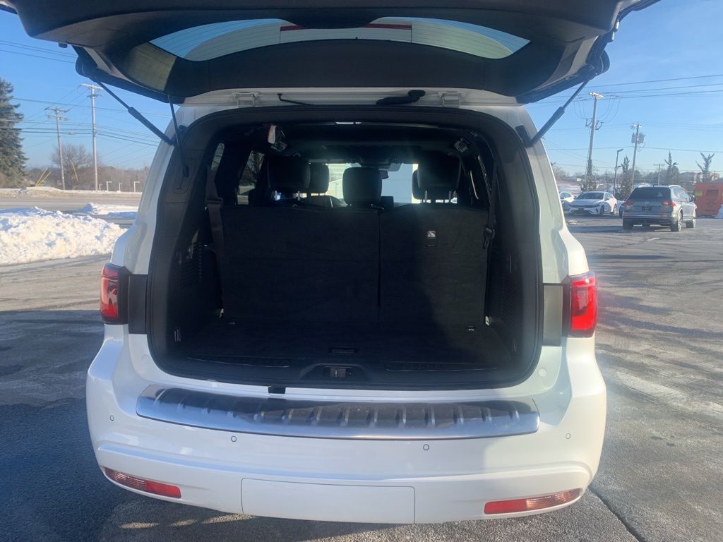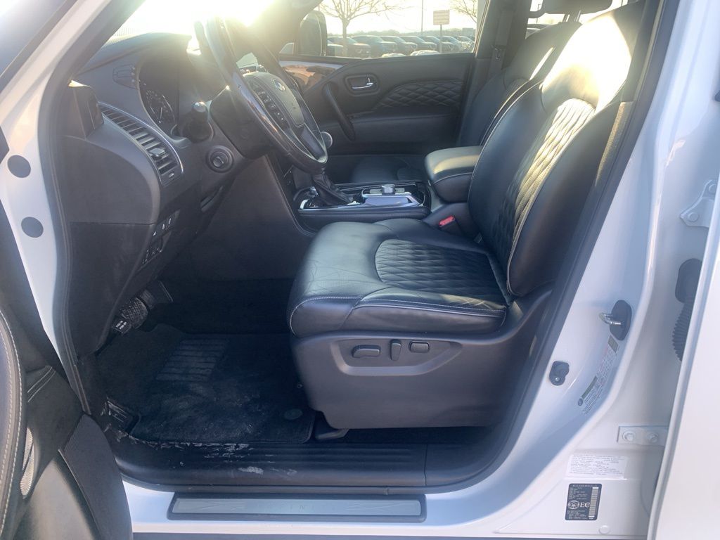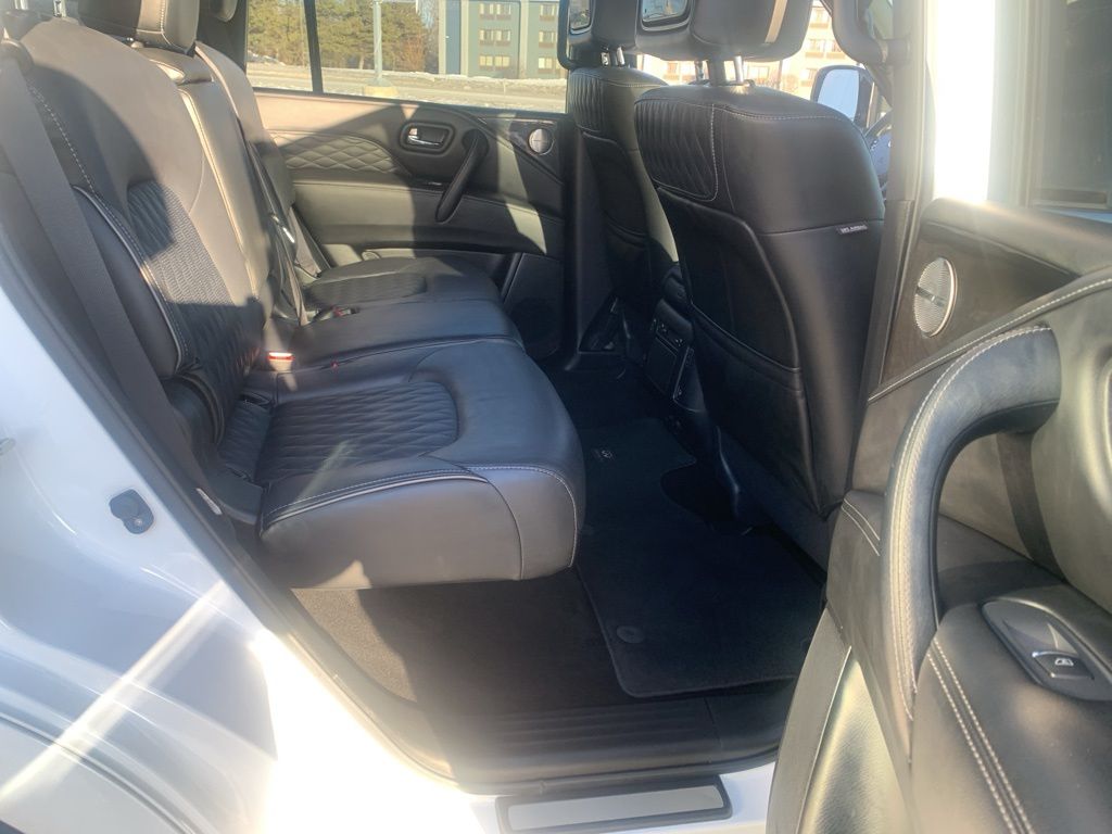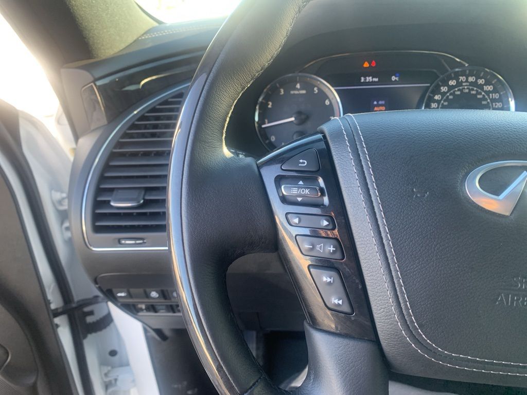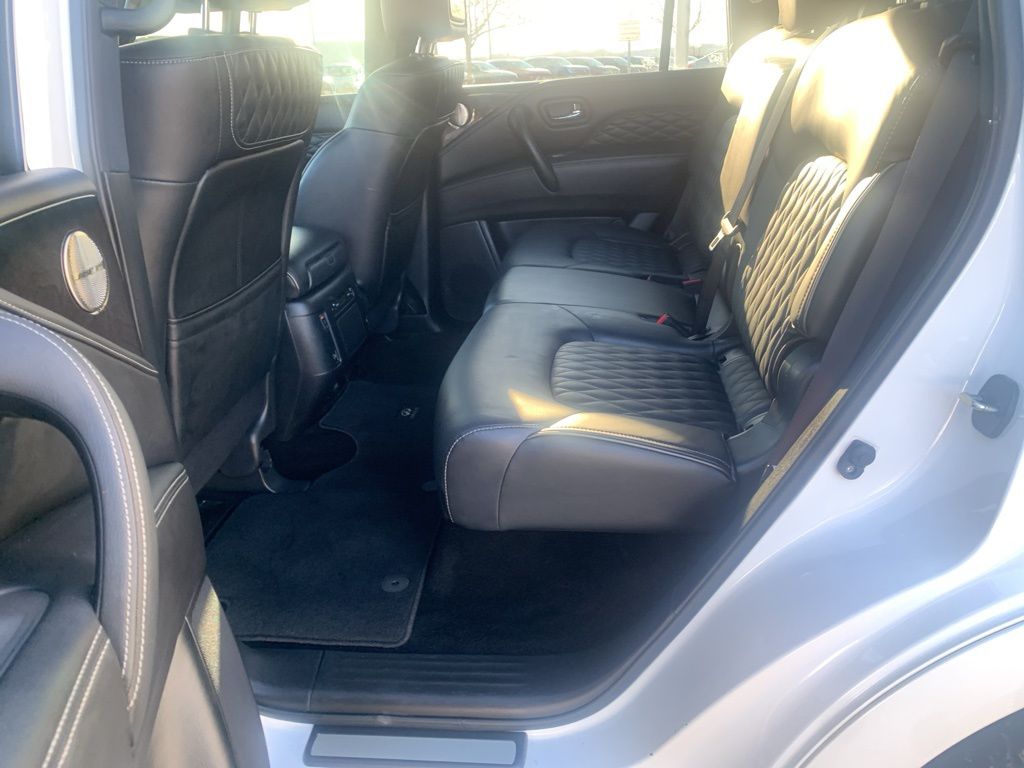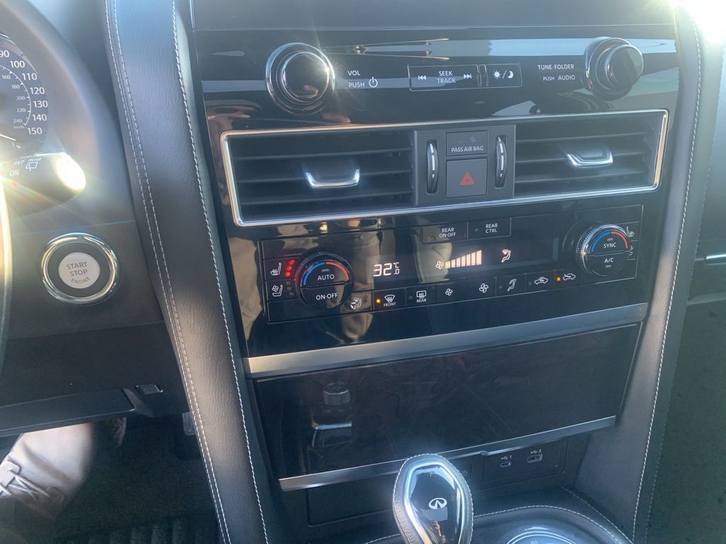 13 Speakers, 2.937 Axle Ratio, 20" Aluminum Alloy Wheels, 3rd row seats: bench, 4-Wheel Disc Brakes, ABS brakes, Air Conditioning, Alloy wheels, AM/FM radio: SiriusXM, Anti-whiplash front head restraints, Apple CarPlay/Android Auto, Auto High-beam Headlights, Auto tilt-away steering wheel, Auto-dimming door mirrors, Auto-dimming Rear-View mirror, Auto-leveling suspension, Automatic temperature control, Brake assist, Bumpers: body-color, Compass, Delay-off headlights, Driver door bin, Driver vanity mirror, Dual front impact airbags, Dual front side impact airbags, Electronic Stability Control, Emergency communication system: INFINITI InTouch, Four wheel independent suspension, Front anti-roll bar, Front Bucket Seats, Front Center Armrest, Front dual zone A/C, Front fog lights, Front reading lights, Fully automatic headlights, Garage door transmitter: HomeLink, Heated door mirrors, Heated Front Bucket Seats, Heated front seats, Heated steering wheel, Illuminated entry, Leather Shift Knob, Leather steering wheel, Leather-Appointed Seats, Low tire pressure warning, Memory seat, Navigation system: INFINITI InTouch Navigation, Occupant sensing airbag, Outside temperature display, Overhead airbag, Overhead console, Panic alarm, Passenger door bin, Passenger vanity mirror, Power door mirrors, Power Drivers Seat, Power Liftgate, Power moonroof, Power passenger seat, Power steering, Power windows, Radio data system, Radio: Bose Premium Audio System w/13 Speakers, Rain sensing wipers, Rear air conditioning, Rear anti-roll bar, Rear reading lights, Rear seat center armrest, Rear window defroster, Rear window wiper, Reclining 3rd row seat, Remote keyless entry, Security system, Speed control, Speed-sensing steering, Split folding rear seat, Spoiler, Steering wheel memory, Steering wheel mounted audio controls, Tachometer, Telescoping steering wheel, Tilt steering wheel, Traction control, Trip computer, Turn signal indicator mirrors, Variably intermittent wipers, Voltmeter. Priced below KBB Fair Purchase Price! Odometer is 28621 miles below market average!