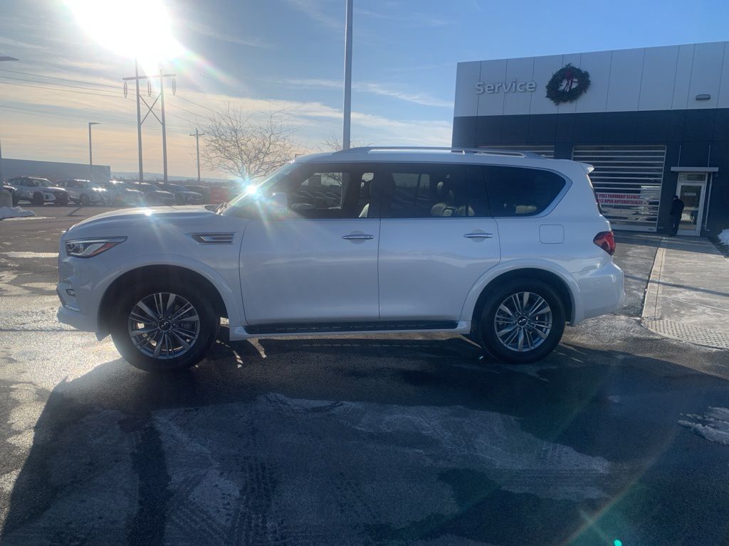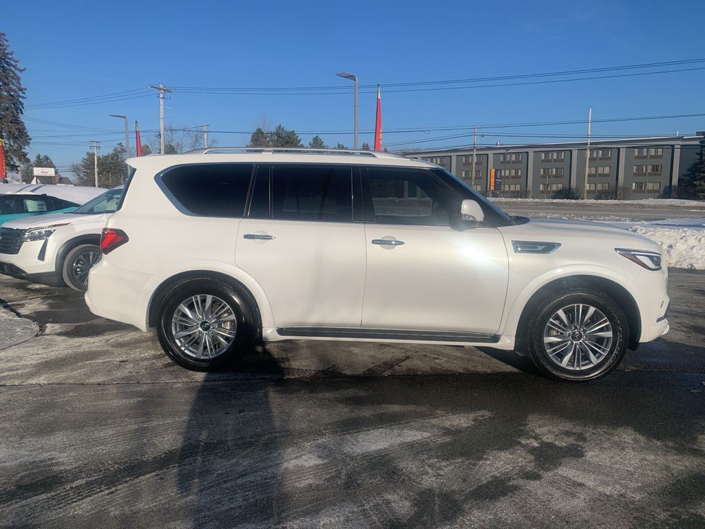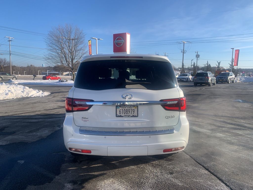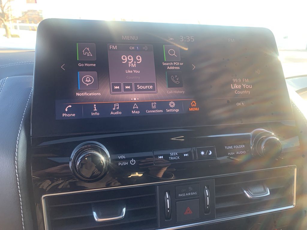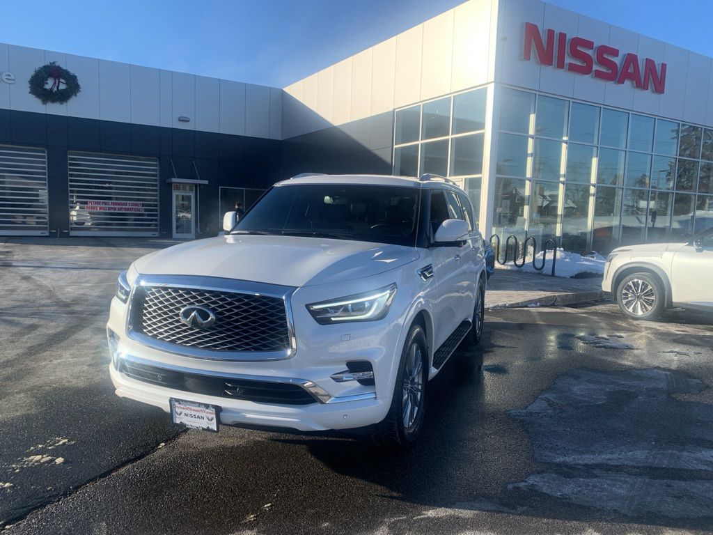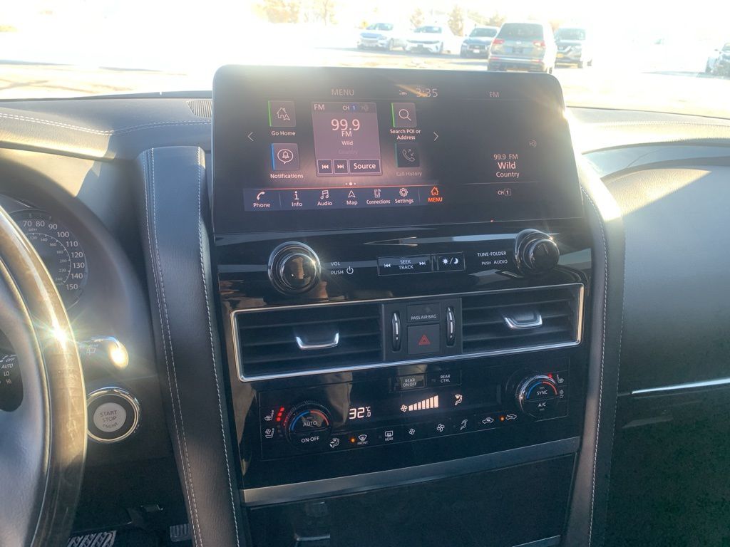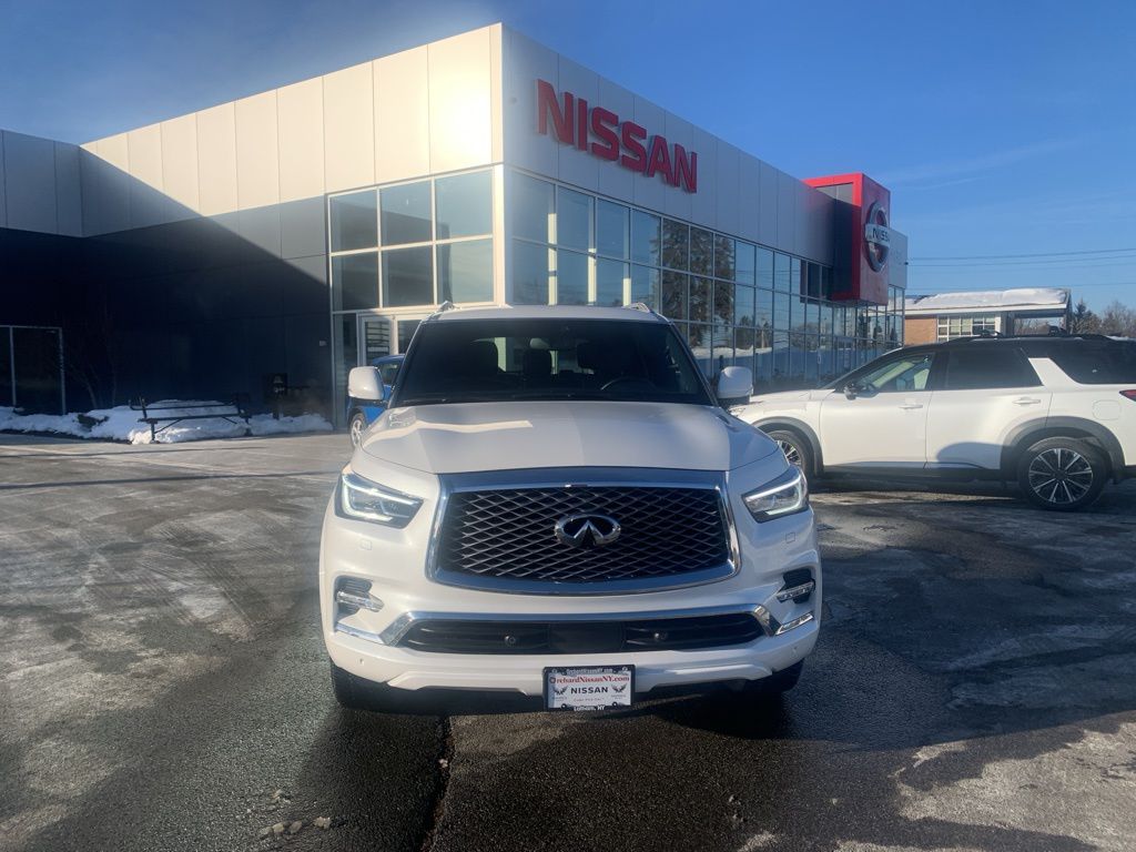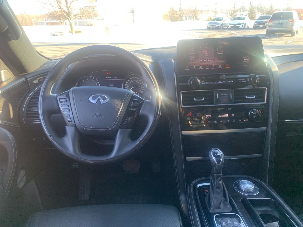 13 Speakers, 2.937 Axle Ratio, 20" Aluminum Alloy Wheels, 3rd row seats: bench, 4-Wheel Disc Brakes, ABS brakes, Air Conditioning, Alloy wheels, AM/FM radio: SiriusXM, Anti-whiplash front head restraints, Apple CarPlay/Android Auto, Auto High-beam Headlights, Auto tilt-away steering wheel, Auto-dimming door mirrors, Auto-dimming Rear-View mirror, Auto-leveling suspension, Automatic temperature control, Brake assist, Bumpers: body-color, Compass, Delay-off headlights, Driver door bin, Driver vanity mirror, Dual front impact airbags, Dual front side impact airbags, Electronic Stability Control, Emergency communication system: INFINITI InTouch, Four wheel independent suspension, Front anti-roll bar, Front Bucket Seats, Front Center Armrest, Front dual zone A/C, Front fog lights, Front reading lights, Fully automatic headlights, Garage door transmitter: HomeLink, Heated door mirrors, Heated Front Bucket Seats, Heated front seats, Heated steering wheel, Illuminated entry, Leather Shift Knob, Leather steering wheel, Leather-Appointed Seats, Low tire pressure warning, Memory seat, Navigation system: INFINITI InTouch Navigation, Occupant sensing airbag, Outside temperature display, Overhead airbag, Overhead console, Panic alarm, Passenger door bin, Passenger vanity mirror, Power door mirrors, Power Drivers Seat, Power Liftgate, Power moonroof, Power passenger seat, Power steering, Power windows, Radio data system, Radio: Bose Premium Audio System w/13 Speakers, Rain sensing wipers, Rear air conditioning, Rear anti-roll bar, Rear reading lights, Rear seat center armrest, Rear window defroster, Rear window wiper, Reclining 3rd row seat, Remote keyless entry, Security system, Speed control, Speed-sensing steering, Split folding rear seat, Spoiler, Steering wheel memory, Steering wheel mounted audio controls, Tachometer, Telescoping steering wheel, Tilt steering wheel, Traction control, Trip computer, Turn signal indicator mirrors, Variably intermittent wipers, Voltmeter. Priced below KBB Fair Purchase Price! Odometer is 28621 miles below market average!