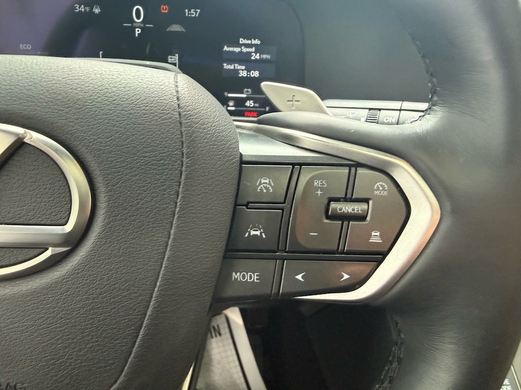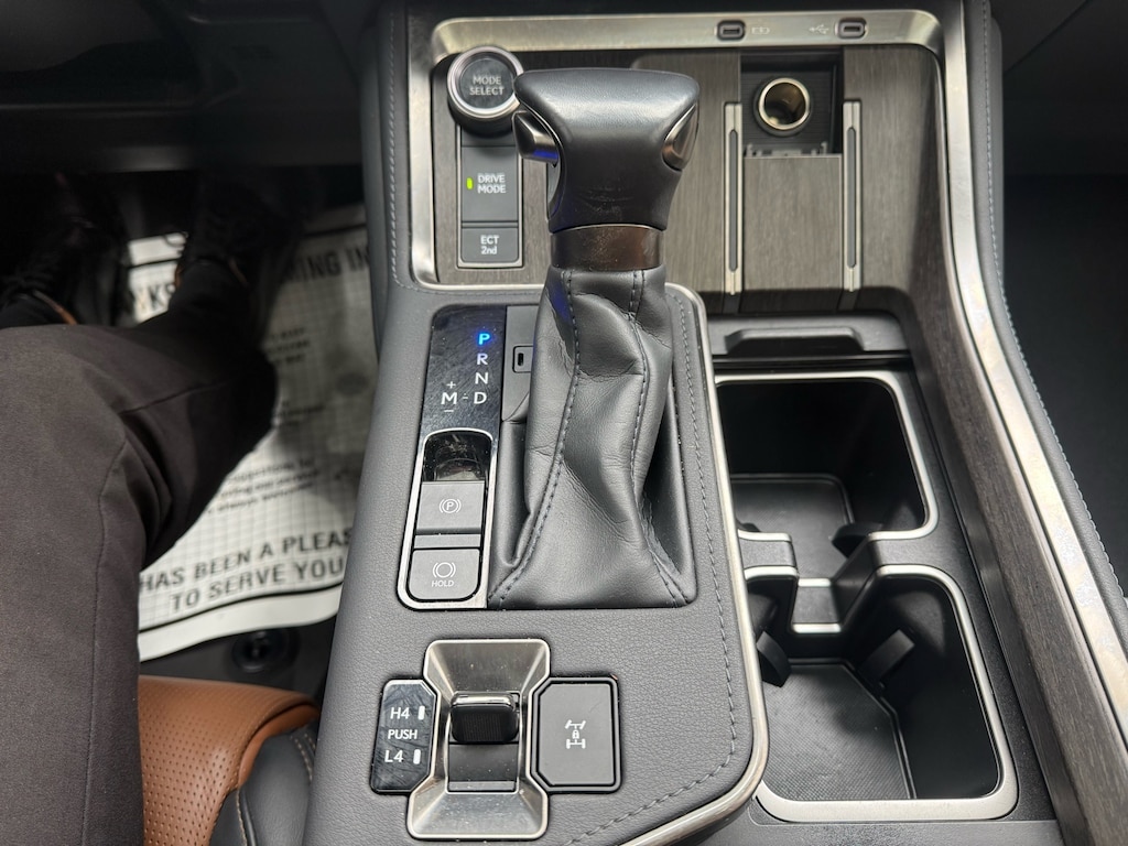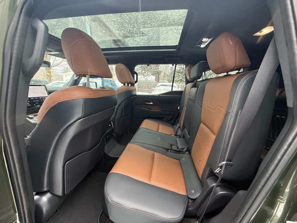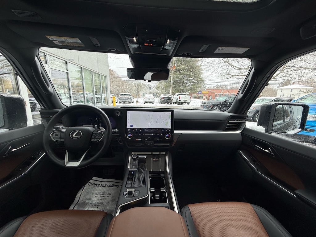 3.307 Axle Ratio, 3rd row seats: split-bench, 4-Wheel Disc Brakes, ABS brakes, Accessory Package (2T), Air Conditioning, All-Weather Cargo Mat, All-Weather Floor Liners, Alloy wheels, AM/FM radio, Anti-whiplash front head restraints, Apple CarPlay/Android Auto, Auto High-beam Headlights, Auto tilt-away steering wheel, Auto-dimming door mirrors, Auto-dimming Rear-View mirror, Automatic temperature control, Brake assist, Bumpers: body-color, Carpet Cargo Mat, Cold Area Package, Cross Bars, Delay-off headlights, Digital Key, Door Edge Film, Driver door bin, Driver Monitor Camera, Driver vanity mirror, Dual front impact airbags, Dual front side impact airbags, Electronic Stability Control, Emergency communication system: Safety Connect (up to 10-year trial subscription included), Exterior Parking Camera Rear, Four wheel independent suspension, Front anti-roll bar, Front Bucket Seats, Front Center Armrest w/Storage, Front Cross Traffic Alert-Braking, Front dual zone A/C, Front fog lights, Front reading lights, Fully automatic headlights, Garage door transmitter: HomeLink, Genuine wood console insert, Head-Up Display, Headlamp Washer, Heated & Ventilated Front Bucket Seats, Heated door mirrors, Heated front seats, Heated rear seats, Heated steering wheel, Illuminated entry, Key Gloves, Knee airbag, Lane Change Assist, Leather Shift Knob, Leather steering wheel, Low tire pressure warning, Memory seat, Navigation system: Drive Connect Cloud Navigation (3-year trial subscription included), Occupant sensing airbag, Overhead airbag, Panic alarm, Passenger door bin, Passenger vanity mirror, Power door mirrors, Power driver seat, Power Folding 3rd Row Seat, Power Liftgate, Power passenger seat, Power steering, Power windows, Quick Charge Cables-Mobile, Radio: Lexus Interface w/14" Touchscreen, Rear air conditioning, Rear anti-roll bar, Rear reading lights, Rear seat center armrest, Rear side impact airbag, Rear window defroster, Rear window wiper, Remote keyless entry, Security system, Semi-Aniline Leather Seat Trim, Speed control, Speed-sensing steering, Split folding rear seat, Spoiler, Steering wheel memory, Steering wheel mounted audio controls, Tachometer, Telescoping steering wheel, Tilt steering wheel, Tonneau Cover, Traction control, Traffic Jam Assist, Trip computer, Turn signal indicator mirrors, Variably intermittent wipers, Ventilated front seats, Wheels: 22" x 7.5J Aluminum Alloy, Windshield Wiper De-Icer.