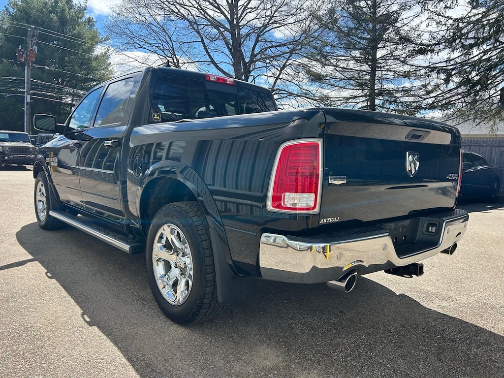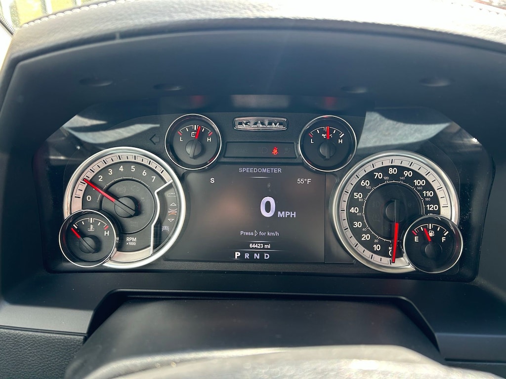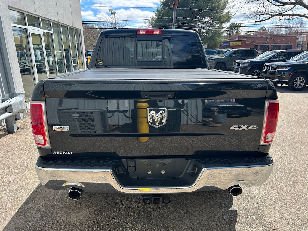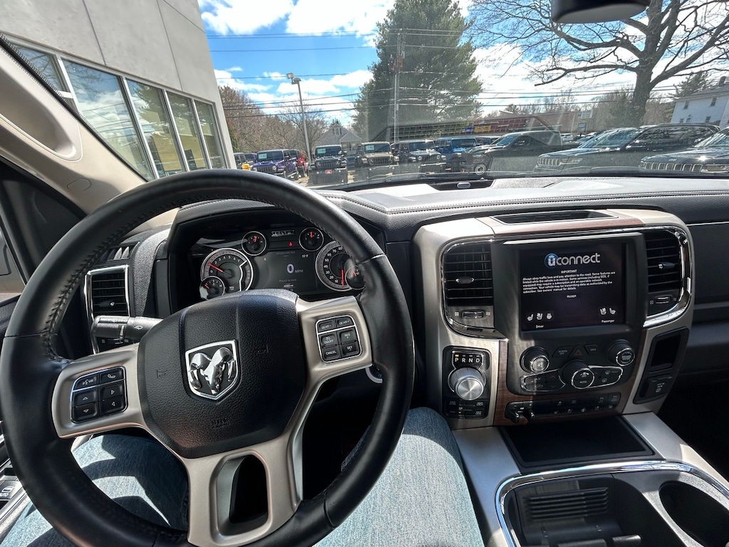 1-Yr SiriusXM Guardian Trial, 115V Auxiliary Power Outlet, 20" x 9" Chrome Clad Aluminum Wheels, 3.21 Rear Axle Ratio, 4-Wheel Disc Brakes, 5-Year SiriusXM Traffic Service, 5-Year SiriusXM Travel Link Service, 6 Speakers, 8.4" Touchscreen Display, 9 Alpine Speakers w/Subwoofer (DISC), ABS brakes, Active Grille Shutters, Adjustable pedals, Air Conditioning, Alloy wheels, AM/FM radio: SiriusXM, Apple CarPlay, Apple CarPlay/Android Auto, Audio Jack Input for Mobile Devices, Audio memory, Auto High Beam Headlamp Control, Auto-dimming door mirrors, Auto-dimming Rear-View mirror, Automatic temperature control, Brake assist, Bumpers: chrome, Center Hub, Compass, Convenience Group, Delay-off headlights, Driver door bin, Driver vanity mirror, Dual front impact airbags, Dual front side impact airbags, Electronic Shift, Electronic Stability Control, Emergency communication system: SiriusXM Guardian, Folding Flat Load rival!Floor Storage, Front & Rear Rubber Floor Mats, Front anti-roll bar, Front Center Armrest w/Storage, Front dual zone A/C, Front fog lights, Front reading lights, Front wheel independent suspension, Fully automatic headlights, Garage door transmitter, Google Android Auto, GPS Antenna Input, GPS Navigation, HD Radio, Heated door mirrors, Heated Front Seats, Heated front seats, Heated steering wheel, High Back Seats, Illuminated entry, Integrated Voice Command w/Bluetooth, Keyless Enter-N-Go, Leather steering wheel, Leather Trim 40/20/40 Bench Seat, LED Bed Lighting, Low tire pressure warning, Media Hub (2 USB, AUX), Memory seat, Occupant sensing airbag, Outside temperature display, Overhead airbag, Overhead console, Panic alarm, ParkSense Front/Rear Park Assist System, ParkView Rear Back-Up Camera, Passenger door bin, Passenger vanity mirror, Pedal memory, Power 10-Way Memory Driver & 6-Way Passenger Seats, Power door mirrors, Power driver seat, Power passenger seat, Power steering, Power windows, Quick Order Package 26H Laramie (DISC), Radio data system, Radio: Uconnect 4C Nav w/8.4" Display, Radio: Uconnect 4C w/8.4" Display, Rain Sensitive Windshield Wipers, Rear 60/40 Split Folding Seat, Rear anti-roll bar, Rear seat center armrest, Rear step bumper, Rear Window Defroster, Remote keyless entry, Remote Proximity Keyless Entry, Remote Start System, Remote USB Port, Security system, SiriusXM Satellite Radio, SiriusXM Traffic Plus, SiriusXM Travel Link, Speed control, Split folding rear seat, Spray In Bedliner, Steering wheel mounted audio controls, Tachometer, Tilt steering wheel, Tip Start, Traction control, Trailer Brake Control, Trip computer, Turn signal indicator mirrors, USB Host Flip, Variably intermittent wipers, Ventilated Front Seats, Ventilated front seats, Voltmeter, Wheel to Wheel Side Steps.
